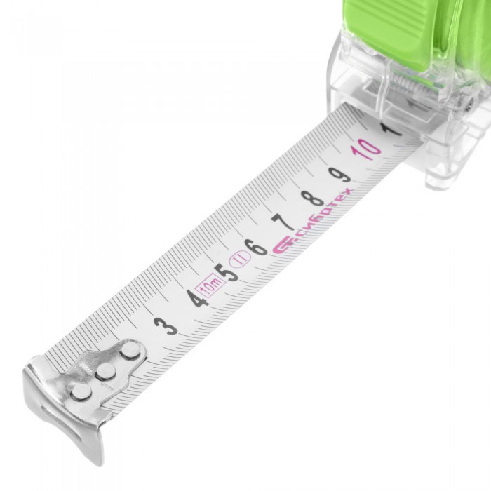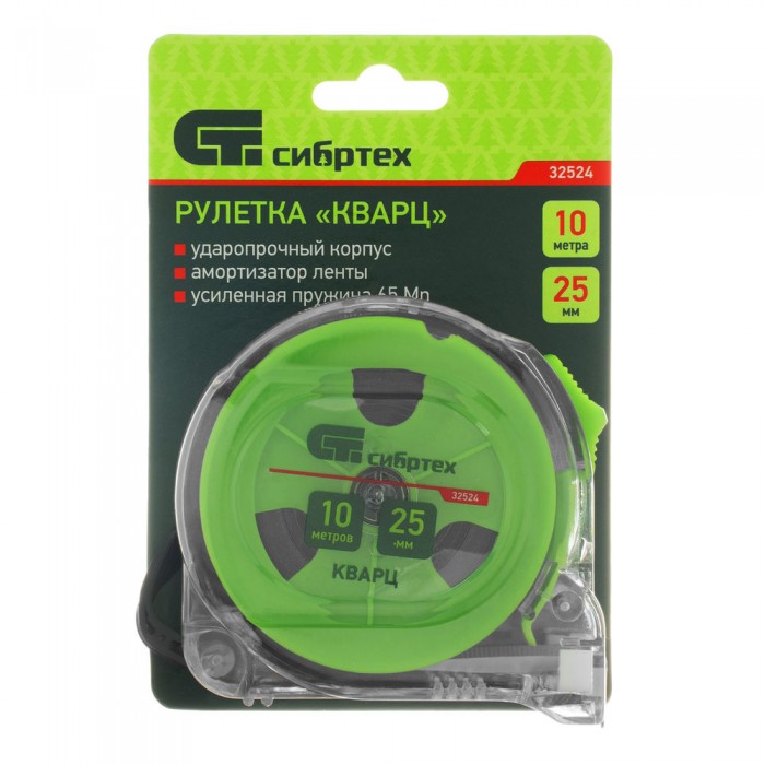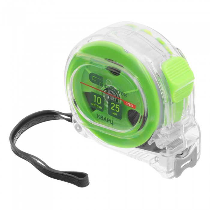 Рулетка Кварц,прозрачный корпус,амортизатор,10 м х 25 мм Сибртех