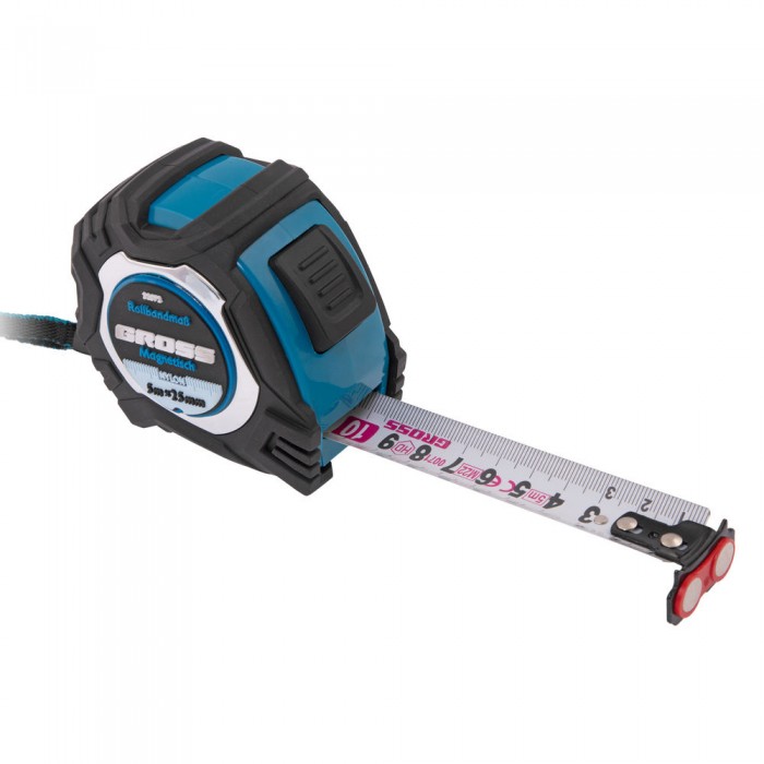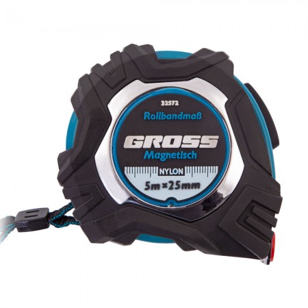 Рулетка Magnetisch 5 м х 25 мм,обрезиненный корпус,автоматическая фиксация,Нейлоновое покрытиеытие,зацеп с магнитом Gross