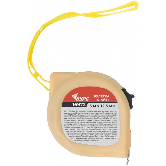 Рулетка пластиковая 2-х цветная "Лайт" 3 м x 12,5 мм