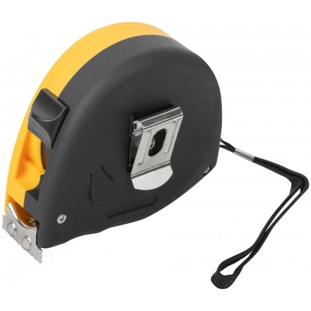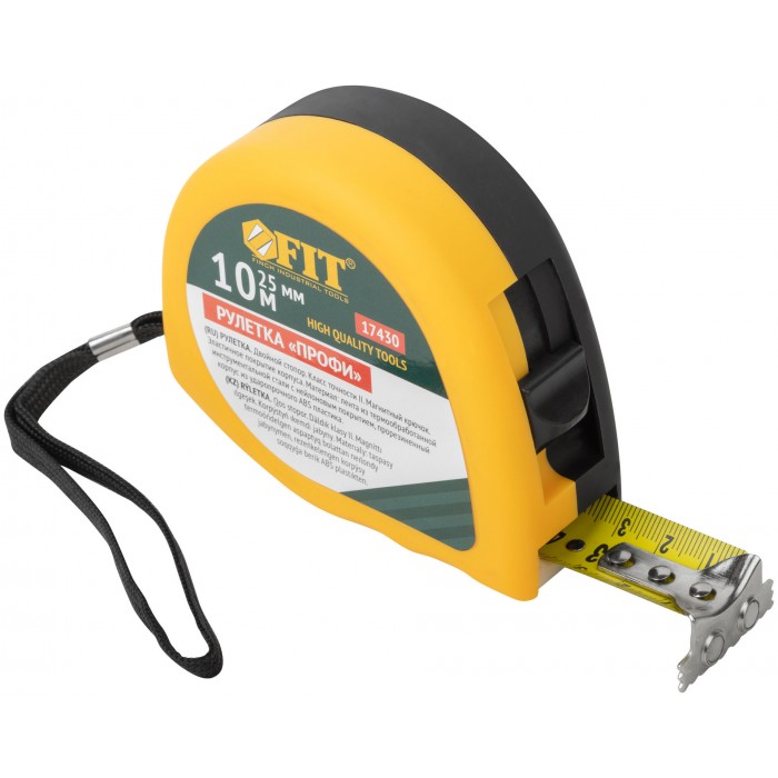 Рулетка Профи, калибр.лента, нейл.покр., магн.крючок, эласт.корпус черн-желт., двойн.стопор 10 м х 25 мм