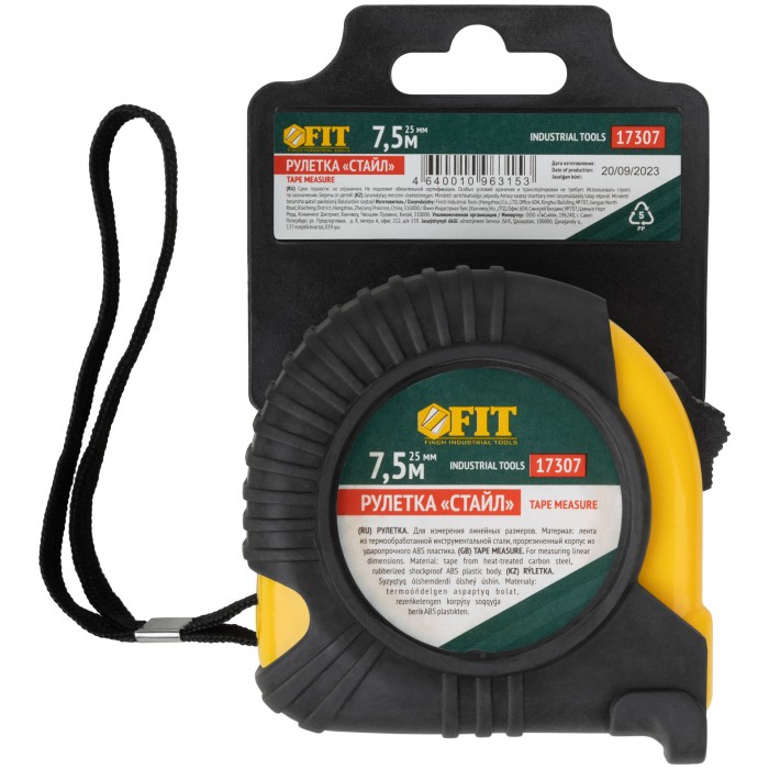 Рулетка Профи, прорезиненный корпус "Стайл" 7,5 м x 25 мм