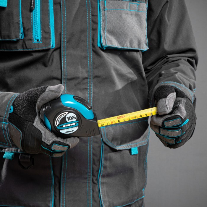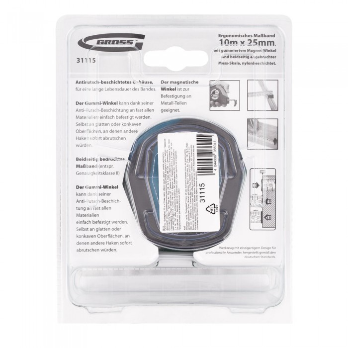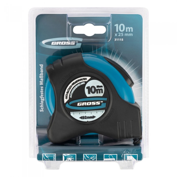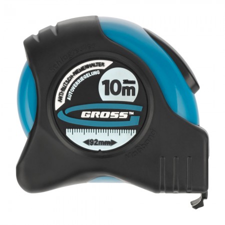 Рулетка "Schlagfest",10 м x 25 мм,магнитный обрезиненный зацеп,двусторонняя шкала,автоматическая фиксация Gross