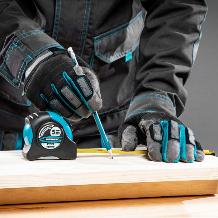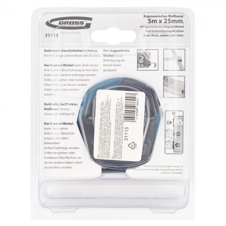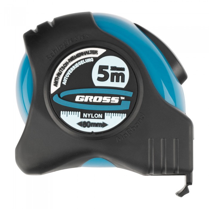 Рулетка "Schlagfest",5 м x 25 мм,магнитный обрезиненный зацеп,двусторонняя шкала,Нейлоновое покрытие,автоматическая фиксация Gross