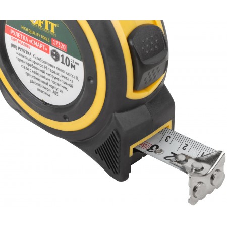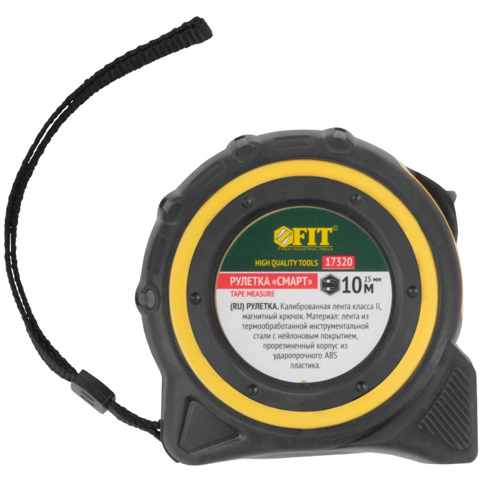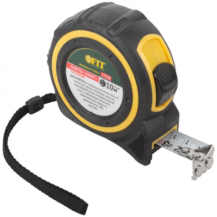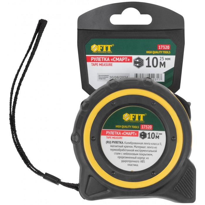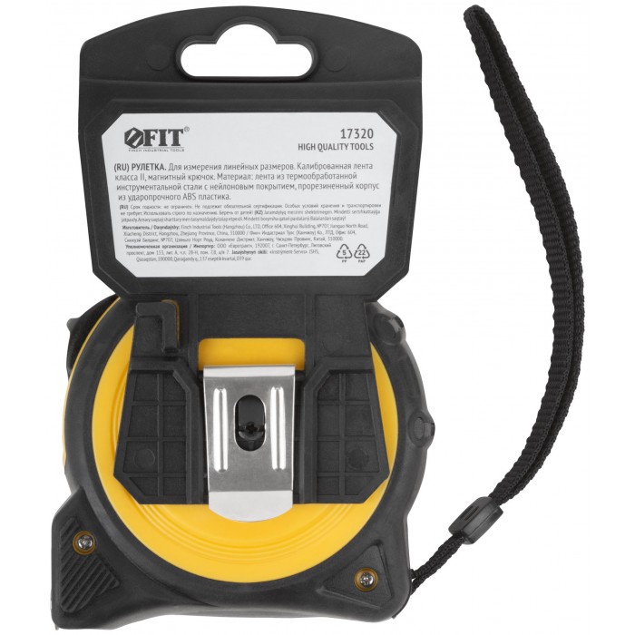 «Смарт». Калиброванная лента класс II, магнитный крючок. Материал: стальная лента с нейлоновым покрытием, прорезиненный корпус из ударопрочного ABS пластика. Упаковка: пластиковый подвес.