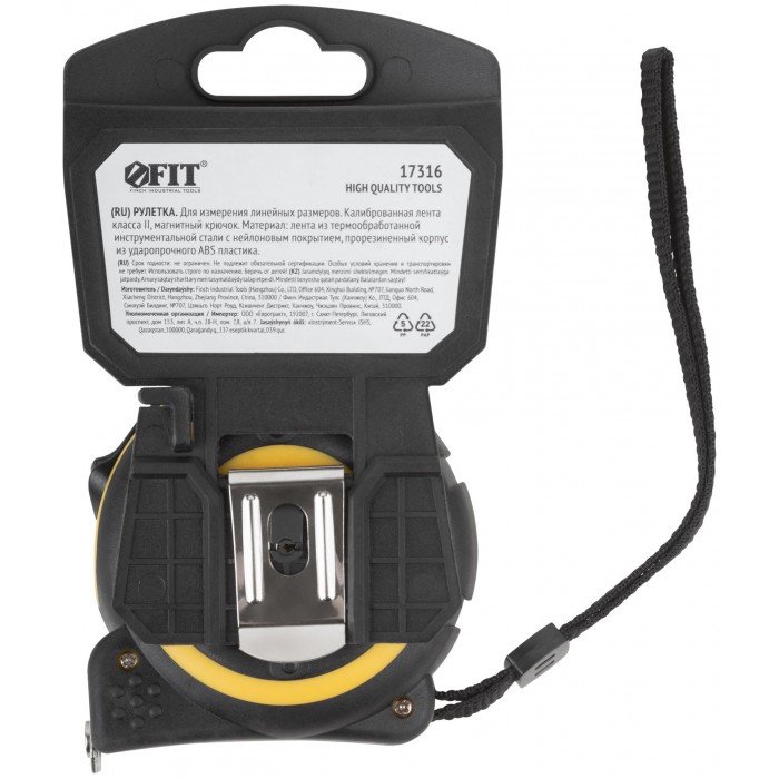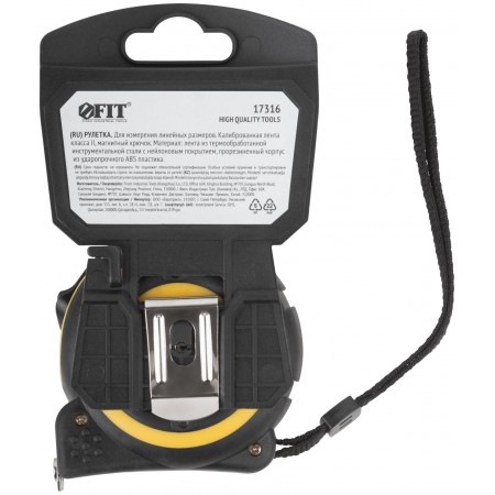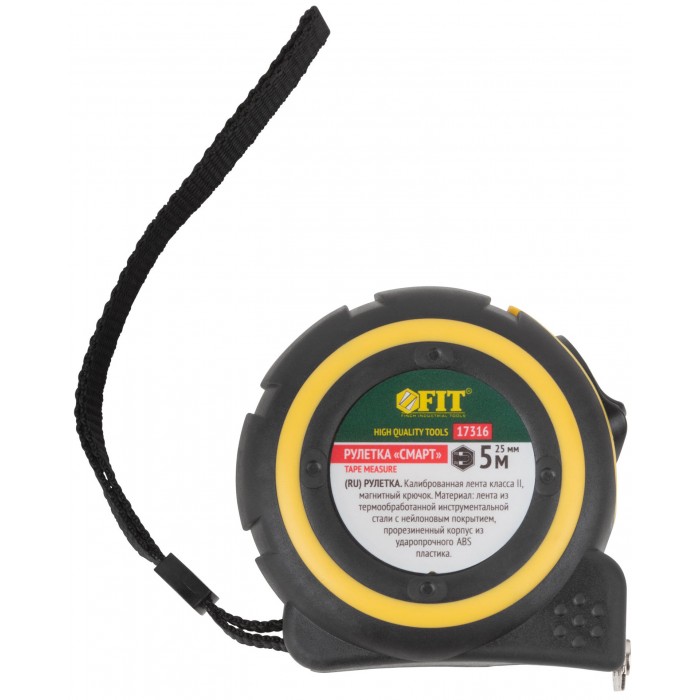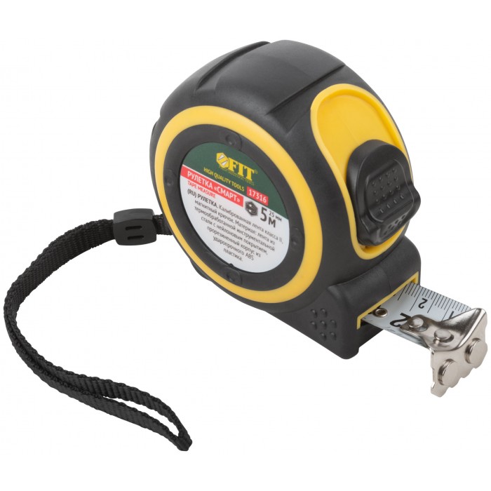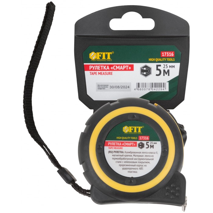 «Смарт». Калиброванная лента класс II, магнитный крючок. Материал: стальная лента с нейлоновым покрытием, прорезиненный корпус из ударопрочного ABS пластика. Упаковка: пластиковый подвес.