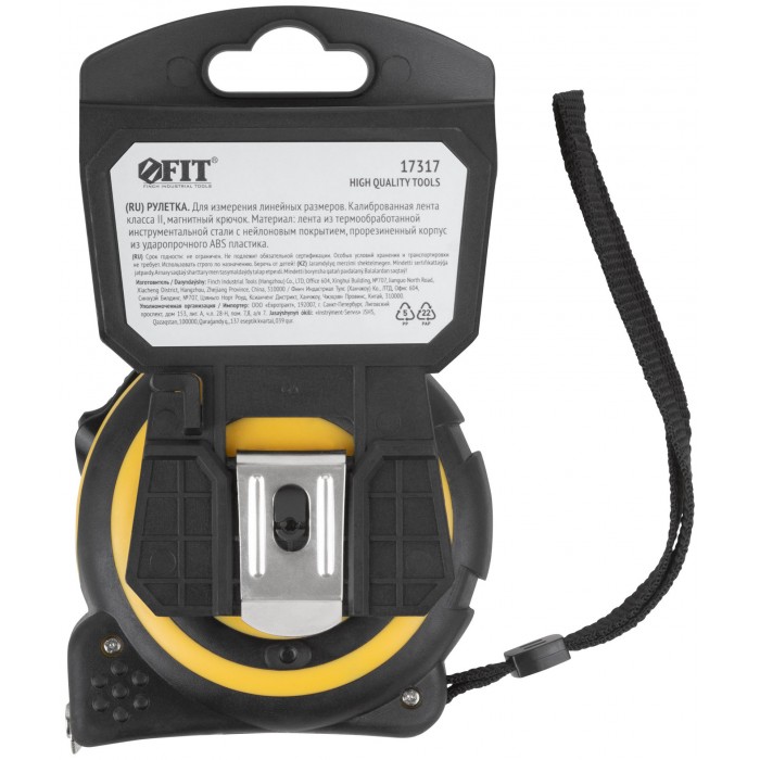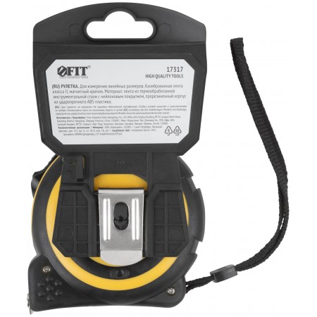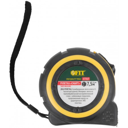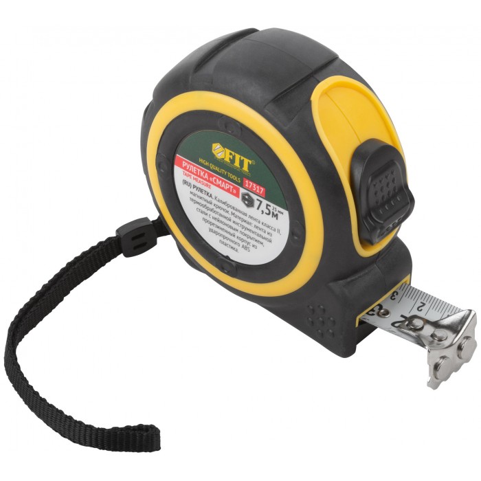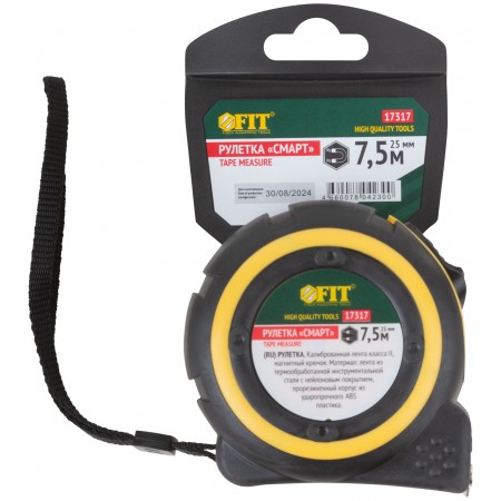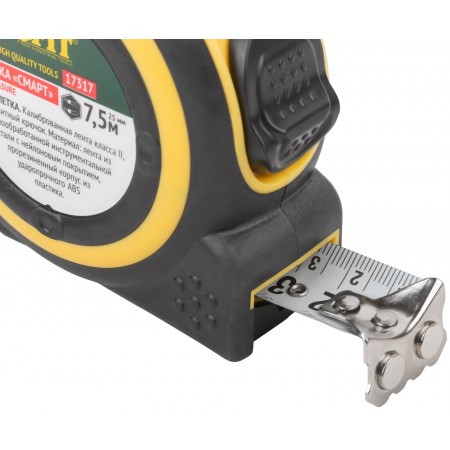 «Смарт». Калиброванная лента класс II, магнитный крючок. Материал: стальная лента с нейлоновым покрытием, прорезиненный корпус из ударопрочного ABS пластика. Упаковка: пластиковый подвес.