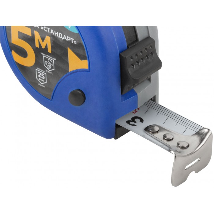 «Стандарт». Предназначена для выполнения замеров и нанесения разметки. Двойной стопор. Материал: стальная лента, корпус из ударопрочного ABS пластика. Упаковка: пластиковый подвес.