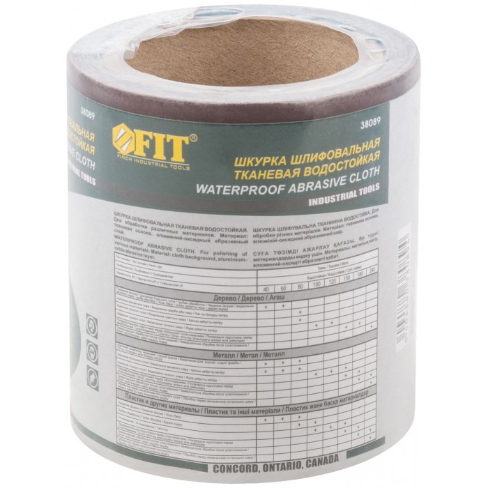 На тканевой основе. В рулонах 115 мм х 5 м. Водостойкая. Для работы по дереву и металлу. Материал: алюминий-оксидный абразивный слой.