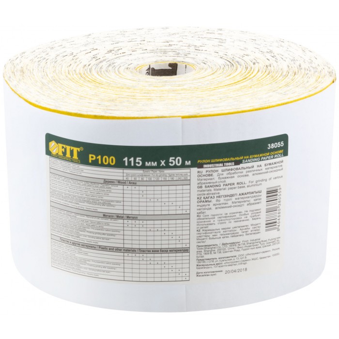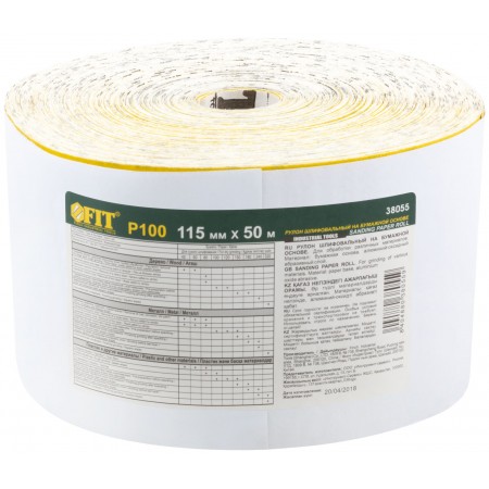 Рулон шлифовальный на бумажной основе, алюминий-оксидный абразивный слой 115 мм х 50 м, Р 100 (38055)