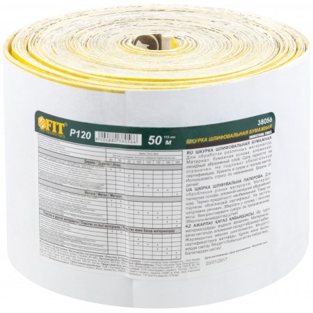 В рулонах 115 мм х 50 м. Для работы по дереву, металлу, пластику, бетону и другим материалам. Материал: бумажная основа, алюминий-оксидный абразивный слой.