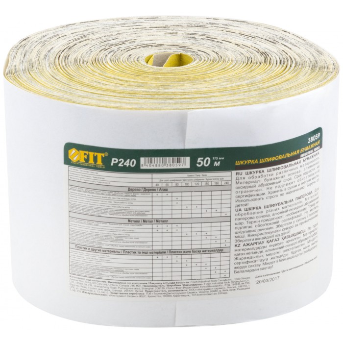 Рулон шлифовальный на бумажной основе, алюминий-оксидный абразивный слой 115 мм х 50 м, Р 240 (38059)