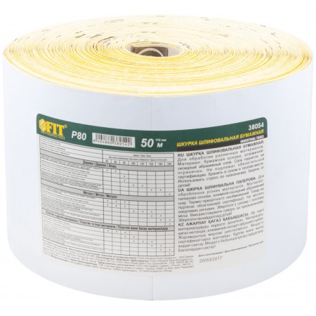 В рулонах 115 мм х 50 м. Для работы по дереву, металлу, пластику, бетону и другим материалам. Материал: бумажная основа, алюминий-оксидный абразивный слой.