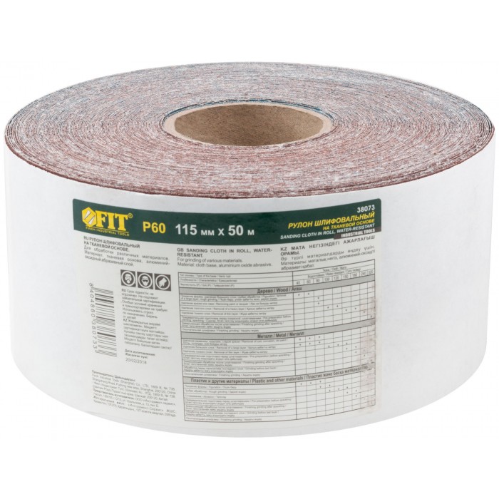 Рулон шлифовальный на тканевой основе, алюминий-оксидный абразивный слой 115 мм х 50 м, Р 60 (38073)