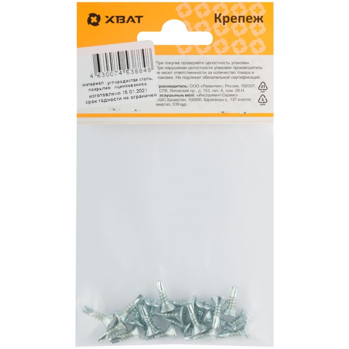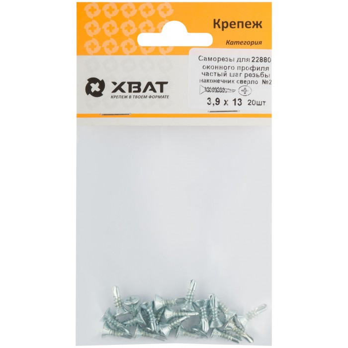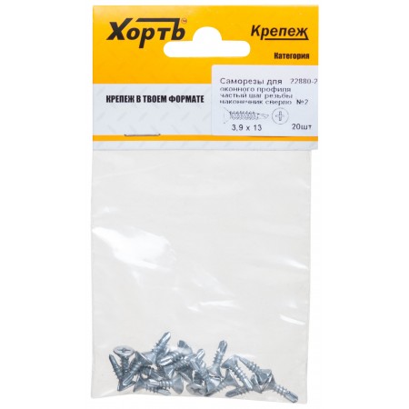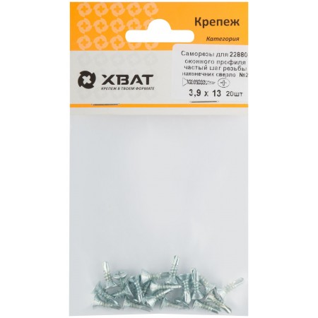 Саморез для оконного профиля частый шаг резьбы, наконечник сверло №2 3.9х13 20 шт. (фасовка) (22880-2)
