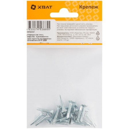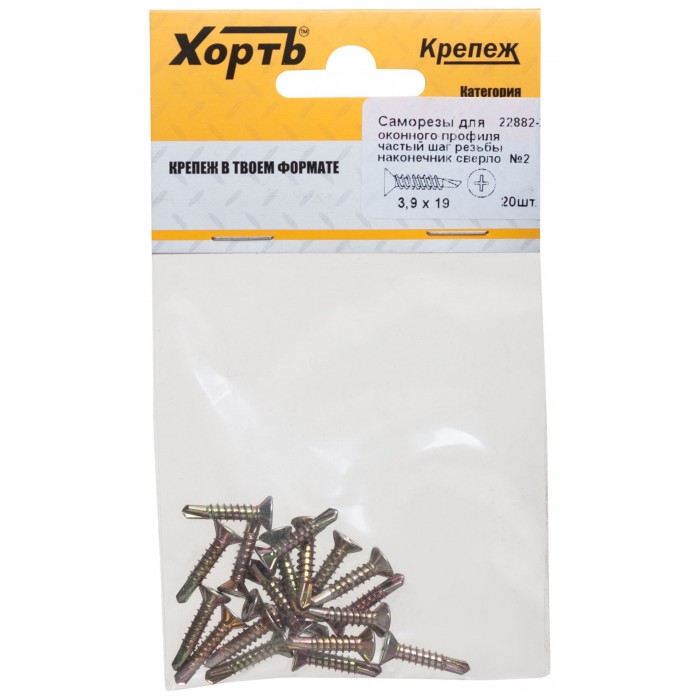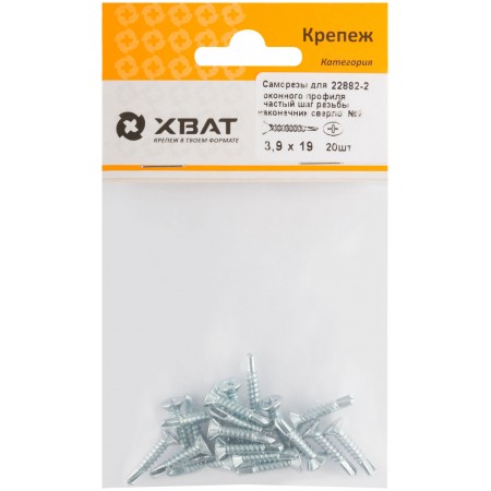 Саморез для оконного профиля частый шаг резьбы, наконечник сверло №2 3.9х19 20 шт. (фасовка) (22882-2)