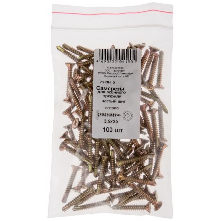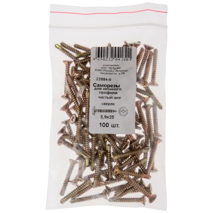 Саморез для оконного профиля частый шаг резьбы, наконечник сверло №2 3.9х25 100 шт. Фасовка (22884-0)