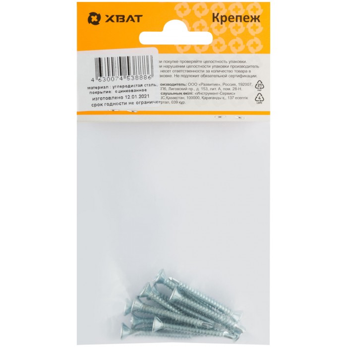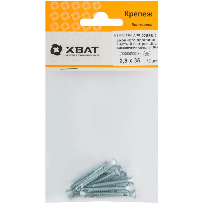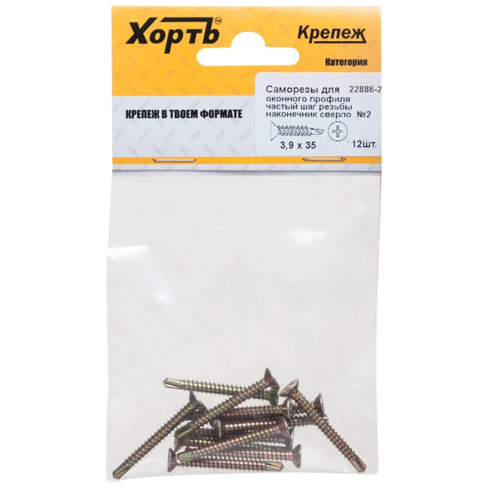 Саморез для оконного профиля частый шаг резьбы, наконечник сверло №2 3.9х35 12 шт. (фасовка) (22886-2)