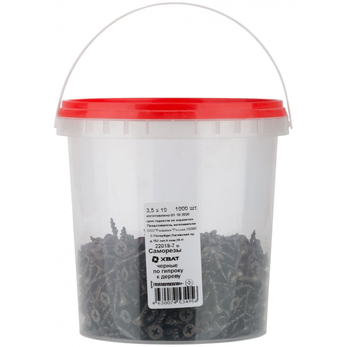 Саморезы черные по гипроку к дереву 3,5 х 19 (фасовка Ведро 1000 шт) (22019-7В)