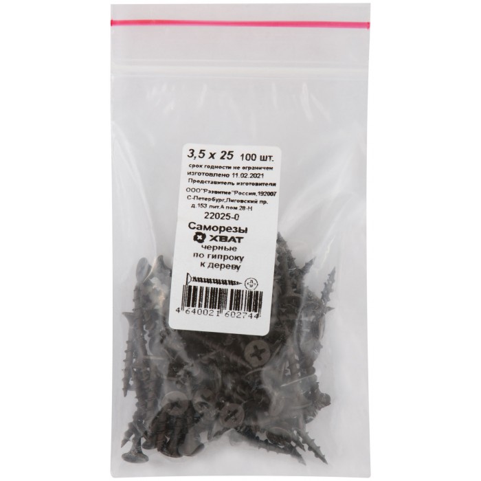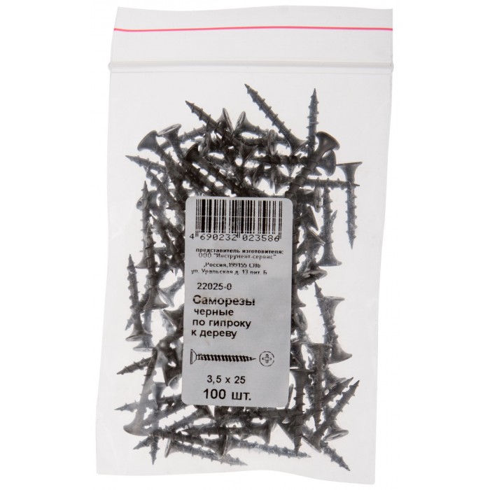 Саморезы черные по гипроку к дереву 3,5 х 25 100 шт Фасовка (22025-0)