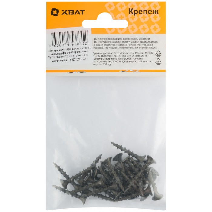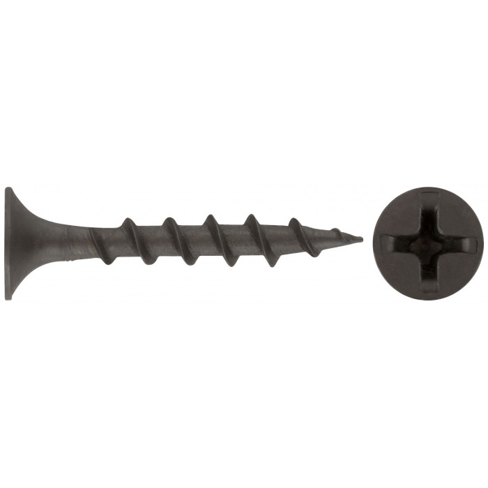 Фосфатированный. Предназначен для крепления материалов к основанию без предварительного сверления. Основная область применения – крепление листов гипсокартона к деревянным конструкциям. Острый наконечник, редкий шаг резьбы и рожковая головка идеально подходят для крепления гипсокартонных плит даже при небольшом крутящем моменте.