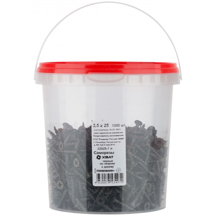Саморезы черные по гипроку к дереву 3,5 х 25 (фасовка Ведро 1000 шт) (22025-7В)