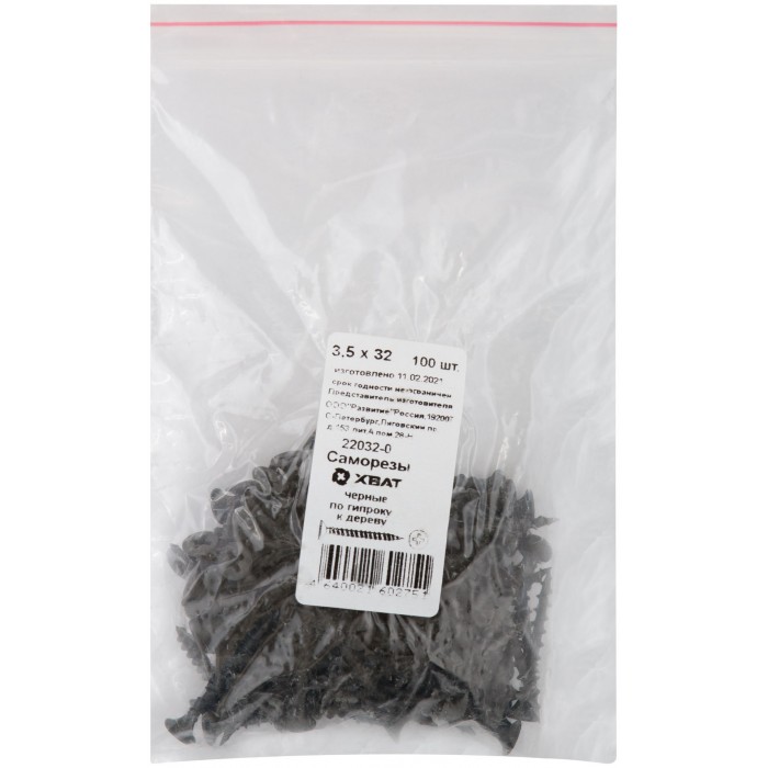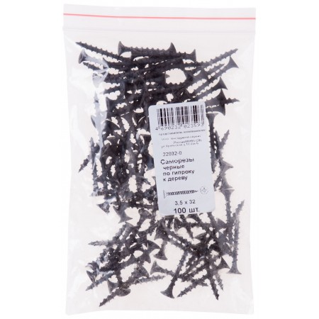 Саморезы черные по гипроку к дереву 3,5 х 32 100 шт Фасовка (22032-0)