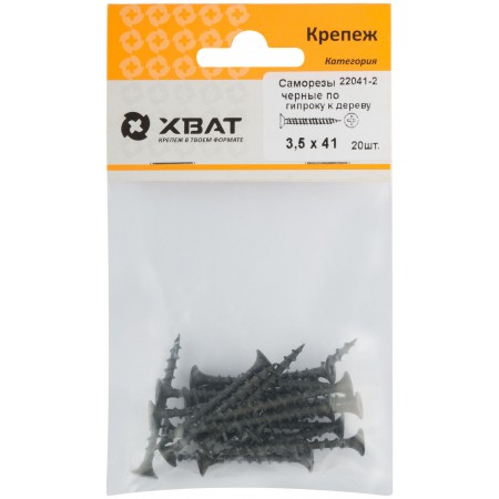 Саморезы черные по гипроку к дереву 3,5 х 41 (фасовка 20шт.) (22041-2)