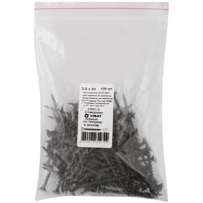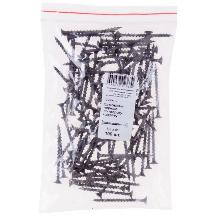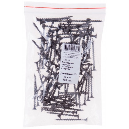 Саморезы черные по гипроку к дереву 3,5 х 51 100 шт Фасовка (22051-0)