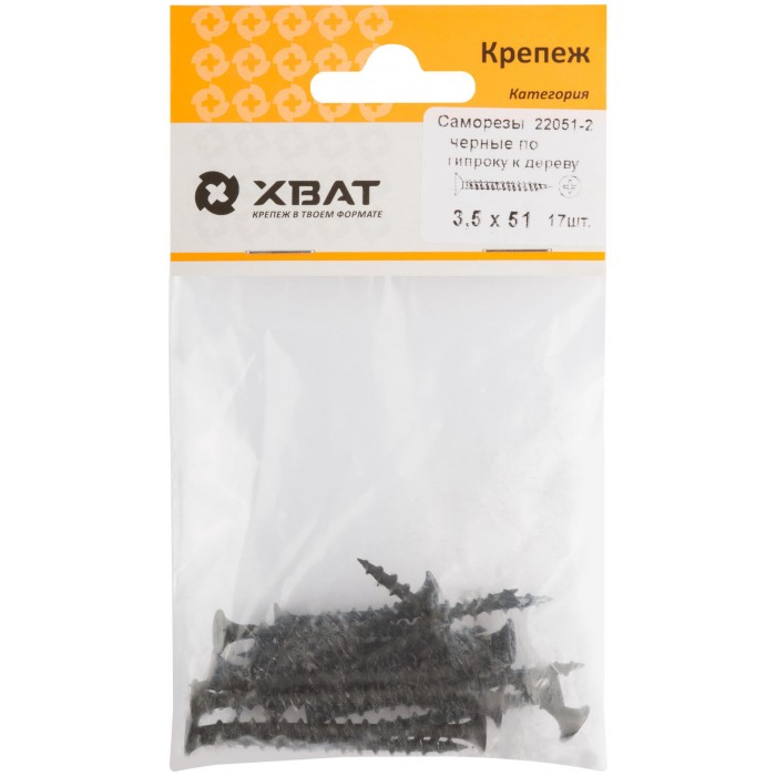 Саморезы черные по гипроку к дереву 3,5 х 51 (фасовка 17 шт.) (22051-2)