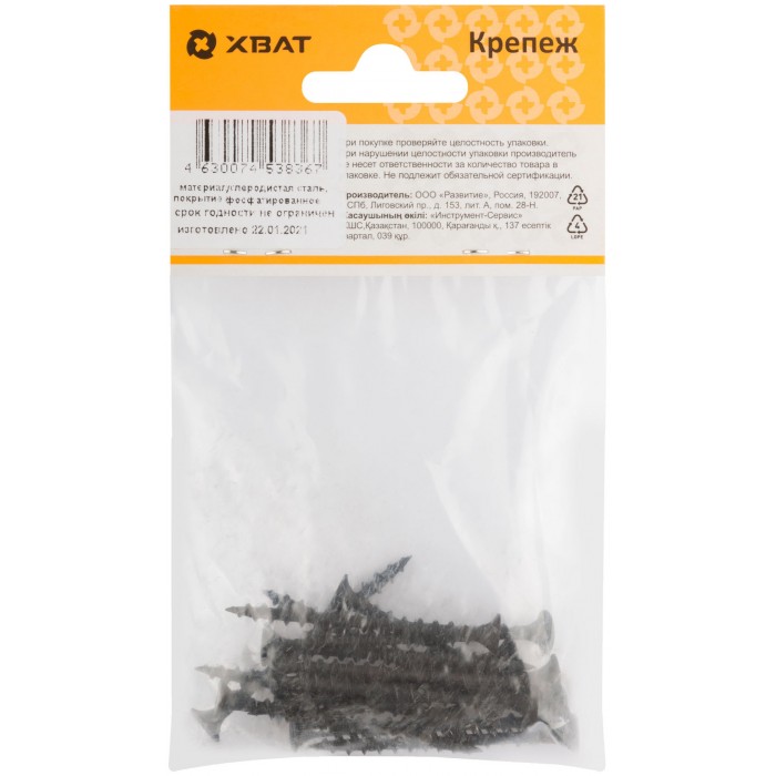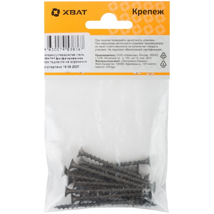 Фосфатированный. Предназначен для крепления материалов к основанию без предварительного сверления. Основная область применения – крепление листов гипсокартона к деревянным конструкциям. Острый наконечник, редкий шаг резьбы и рожковая головка идеально подходят для крепления гипсокартонных плит даже при небольшом крутящем моменте.
