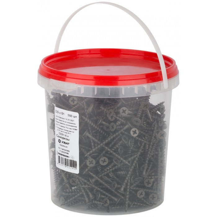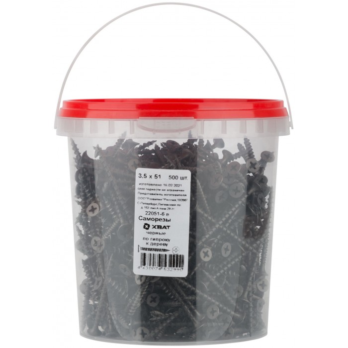 Саморезы черные по гипроку к дереву 3,5 х 51 (фасовка Ведро 500 шт) (22051-6В)