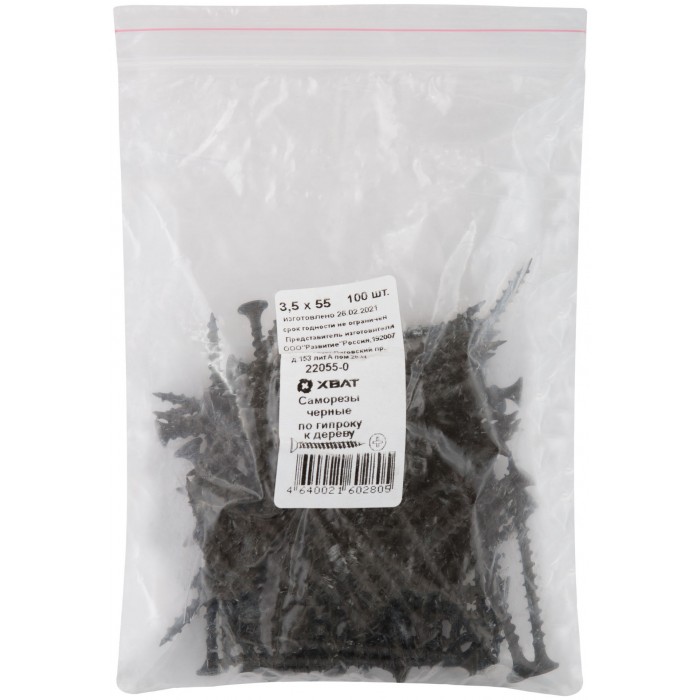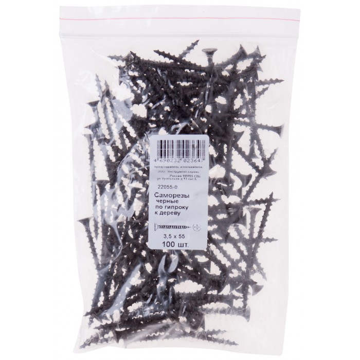 Саморезы черные по гипроку к дереву 3,5 х 55 100 шт Фасовка (22055-0)
