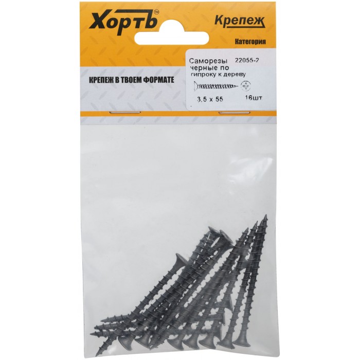 Саморезы черные по гипроку к дереву 3,5 х 55 (фасовка 16 шт) (22055-2)
