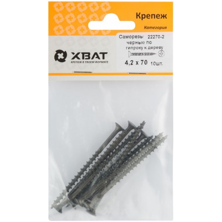 Саморезы черные по гипроку к дереву 4,2 х 70 (фасовка 10 шт) (22270-2)