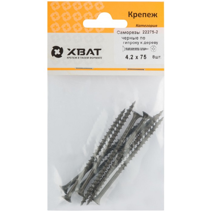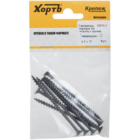 Саморезы черные по гипроку к дереву 4,2 х 75 (фасовка 8 шт) (22275-2)
