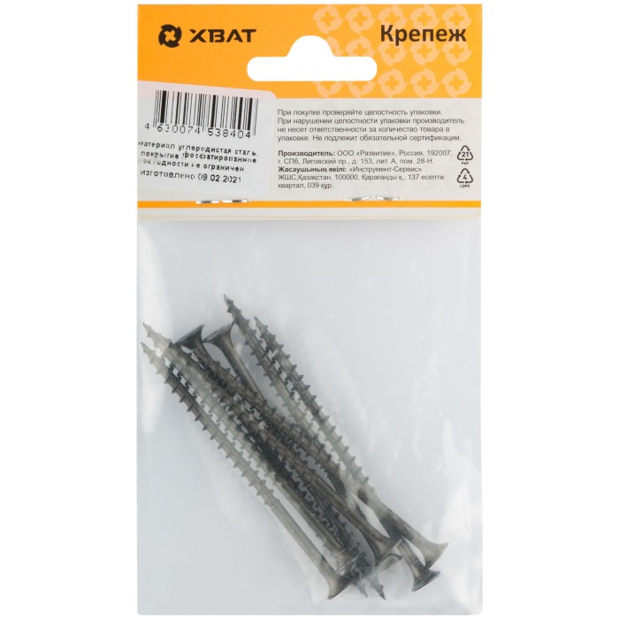 Фосфатированный. Предназначен для крепления материалов к основанию без предварительного сверления. Основная область применения – крепление листов гипсокартона к деревянным конструкциям. Острый наконечник, редкий шаг резьбы и рожковая головка идеально подходят для крепления гипсокартонных плит даже при небольшом крутящем моменте.