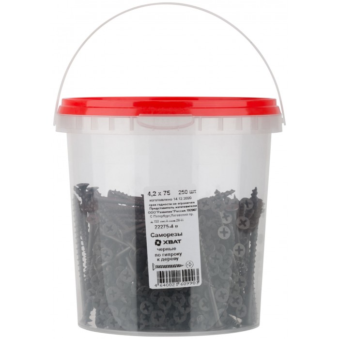Саморезы черные по гипроку к дереву 4,2 х 75 (фасовка Ведро 250 шт) (22275-4В)