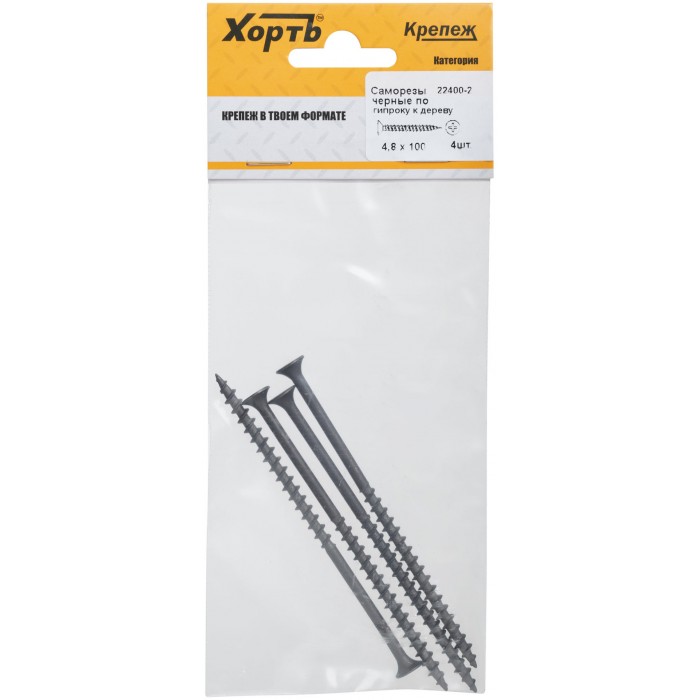 Саморезы черные по гипроку к дереву 4,8 х 100 (фасовка 4 шт) (22400-2)