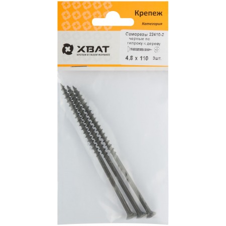 Саморезы черные по гипроку к дереву 4,8 х 110 (фасовка 3 шт) (22410-2)