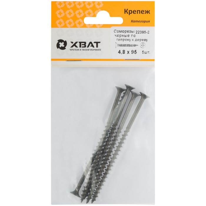 Саморезы черные по гипроку к дереву 4,8 х 95 (фасовка 5 шт) (22395-2)