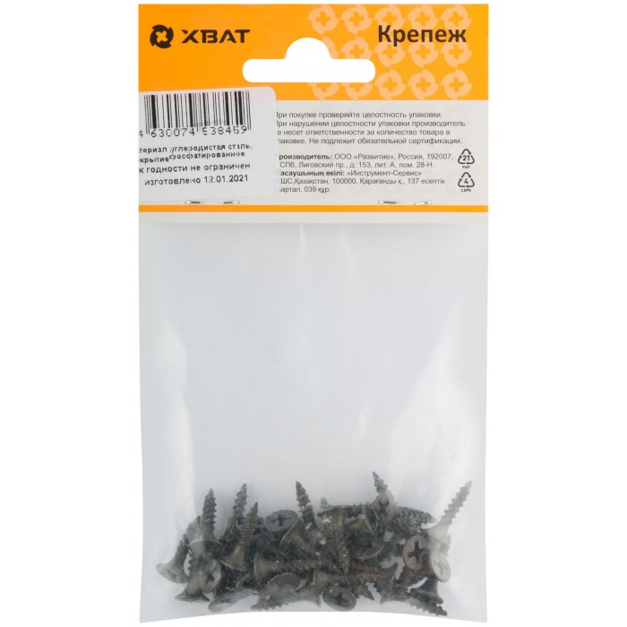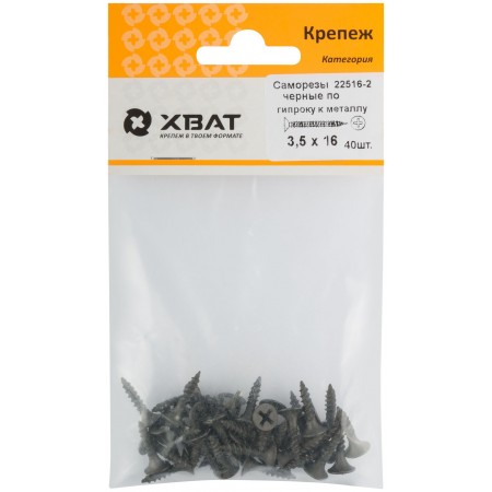Саморезы черные по гипроку к металлу 3,5 х 16 (фасовка 40 шт) (22516-2)