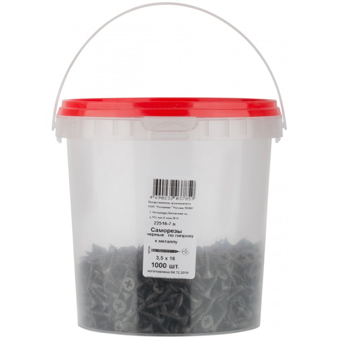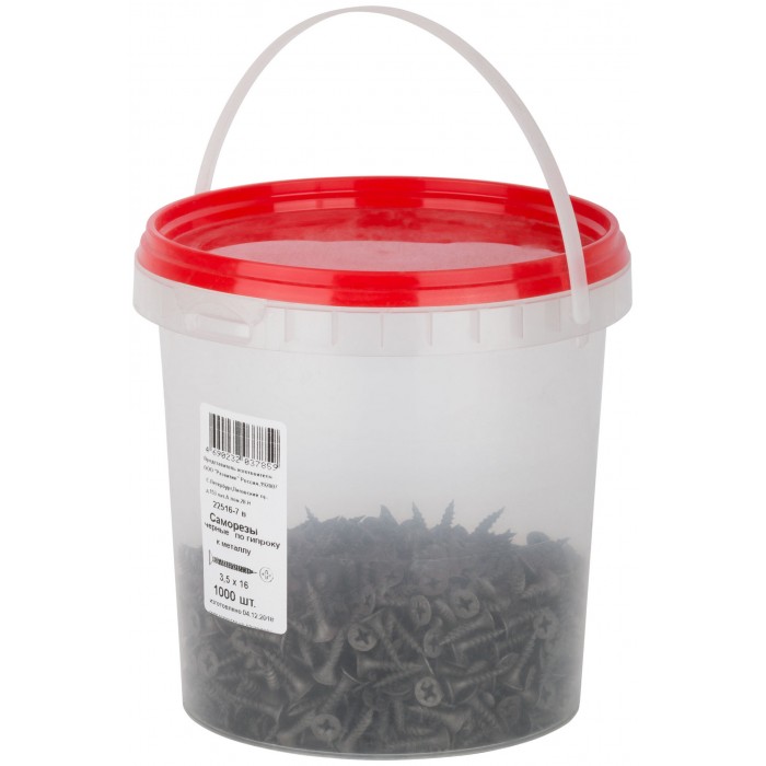 Саморезы черные по гипроку к металлу 3,5 х 16 (фасовка Ведро 1000 шт) (22516-7В)