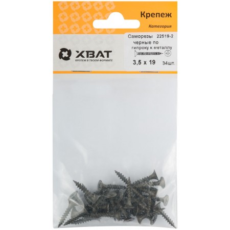 Саморезы черные по гипроку к металлу 3,5 х 19 (фасовка 34 шт) (22519-2)