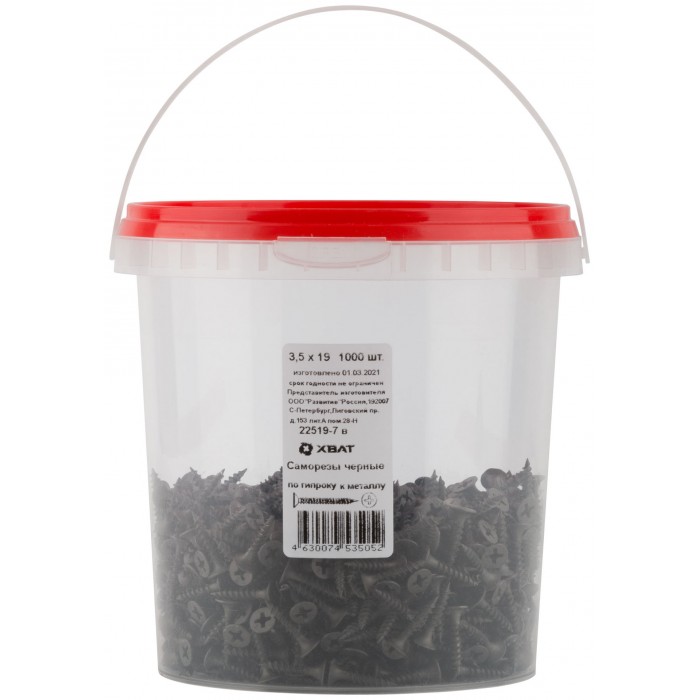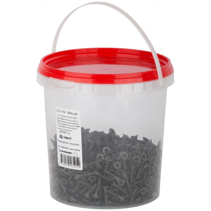 Саморезы черные по гипроку к металлу 3,5 х 19 (фасовка Ведро 1000 шт) (22519-7В)