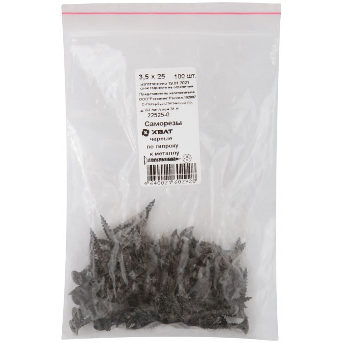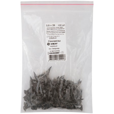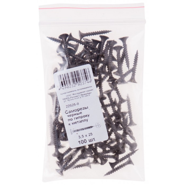 Саморезы черные по гипроку к металлу 3,5 х 25 100 шт Фасовка (22525-0)