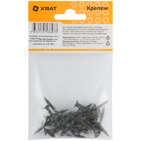 Саморезы черные по гипроку к металлу 3,5 х 25 (фасовка 30 шт) (22525-2)