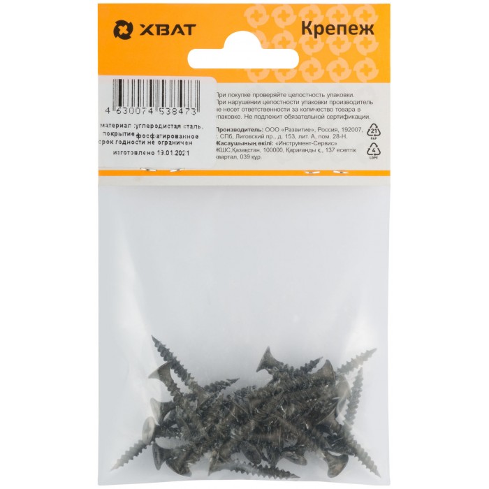 Фосфатированный. Предназначен для крепления материалов к основанию без предварительного сверления. Основная область применения – крепление листов гипсокартона к профилям из листового металла толщиной до 0,9 мм. Частый шаг резьбы.