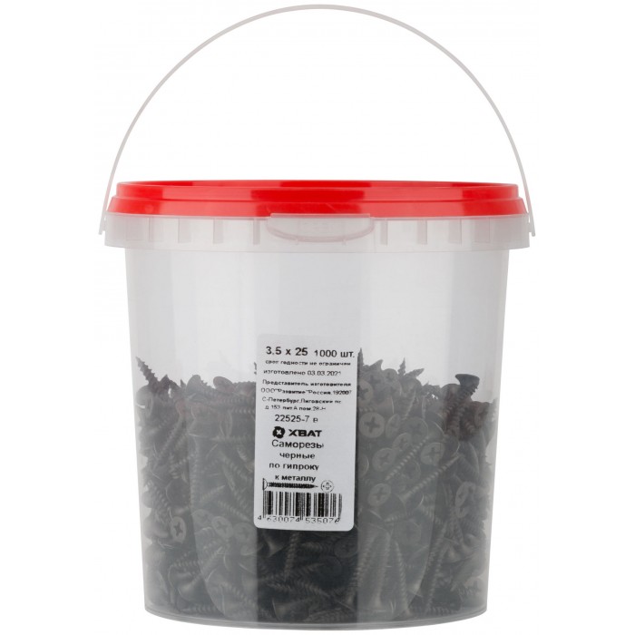 Саморезы черные по гипроку к металлу 3,5 х 25 (фасовка Ведро 1000 шт) (22525-7В)