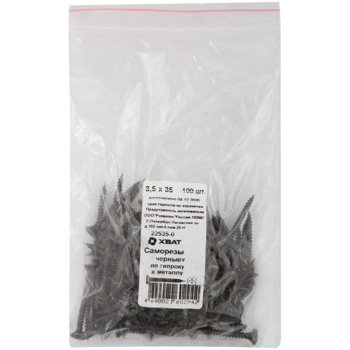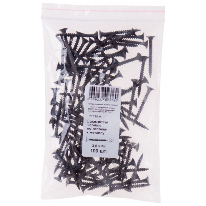 Саморезы черные по гипроку к металлу 3,5 х 35 100 шт Фасовка (22535-0)