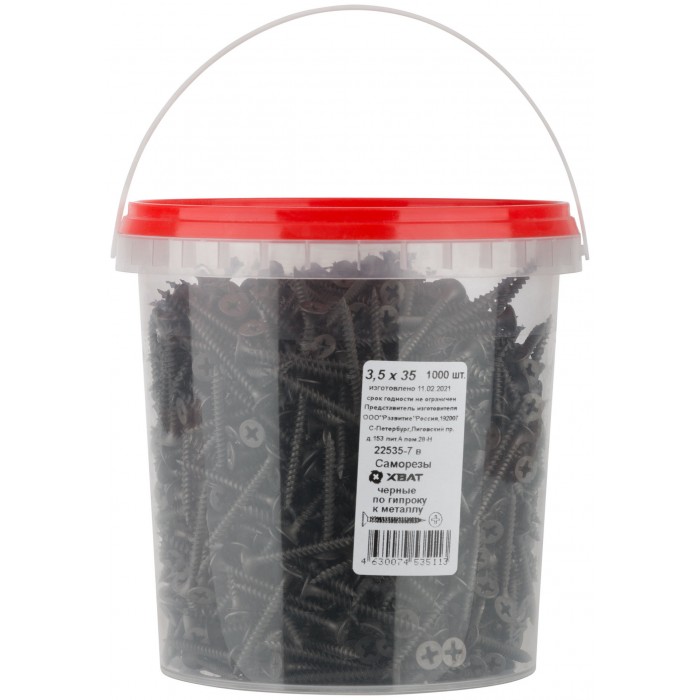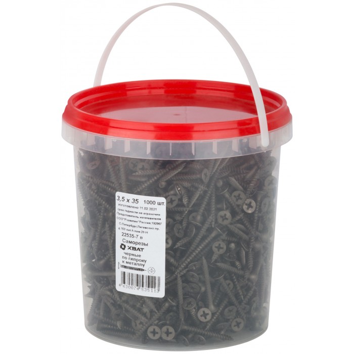 Саморезы черные по гипроку к металлу 3,5 х 35 (фасовка Ведро 1000 шт) (22535-7В)